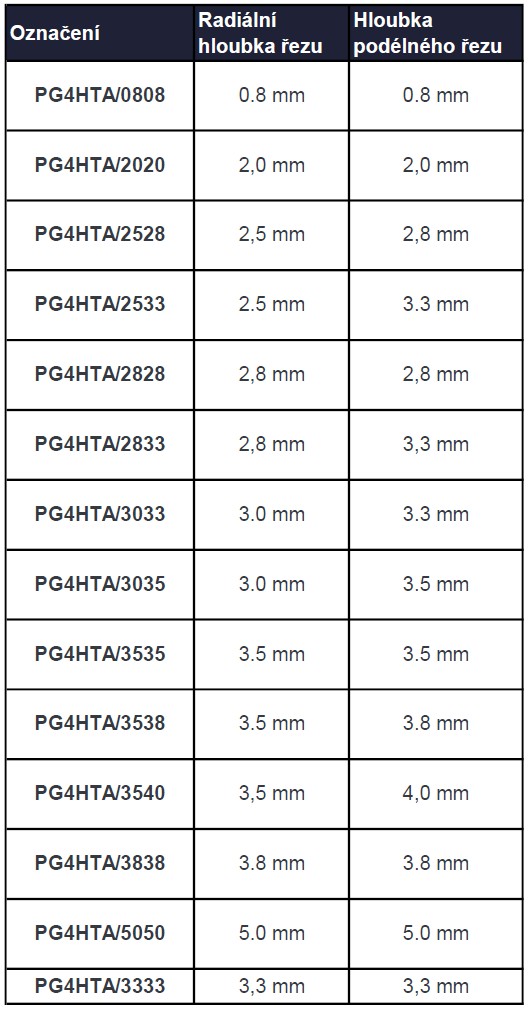 Řada PG3 je určena pro kabely o průměru 26 až 52 mm, řada PG4 je pro kabely o průměru 47 až 75 mm.